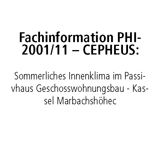 Messtechnische Untersuchung und Auswertung des sommerlichen thermischen Verhaltens eines Passivhaus-Geschosswohnungsbaus in Kassel-Marbachshöhe, Endbericht Das Bauvorhaben in Kassel-Marbachshöhe umfasst insgesamt 40 Wohneinheiten und stellt das erste Passivhaus-Projekt im öffentlich geförderten sozialen Geschosswohnungsbau in Deutschland dar. Der Bericht dokumentiert die wissenschaftliche Auswertung des sommerlichen Temperaturverhaltens dieses Gebäudes, welches im Zeitraum von Mai bis September 2001 messtechnisch untersucht wurde.