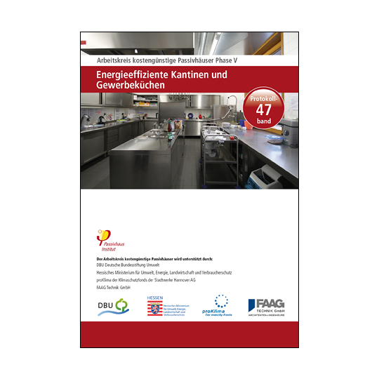 Die notwendigen Geräte werden dabei als Teil des Ganzen betrachtet und genauso wie die Gebäudehülle konsequent in der Planung bearbeitet und energieeffizient projektiert. Große Bedeutung kommt angesichts der vielen überschüssigen Hitze einer Lüftung mit Wärmerückgewinnung zu. Noch wichtiger aber ist die Effizienz der Kernsysteme. Träger des Arbeitskreises Phase V sind die Deutsche Bundesstiftung Umwelt, das Hessische Umweltministerium, proKlima - Der enercity-Fonds und die FAAG Technik GmbH. Die im Protokollband 47 dargestellten Ergebnisse wurden im Auftrag des Hessischen Ministeriums für Umwelt, Energie, Landwirtschaft und Verbraucherschutz erarbeitet.